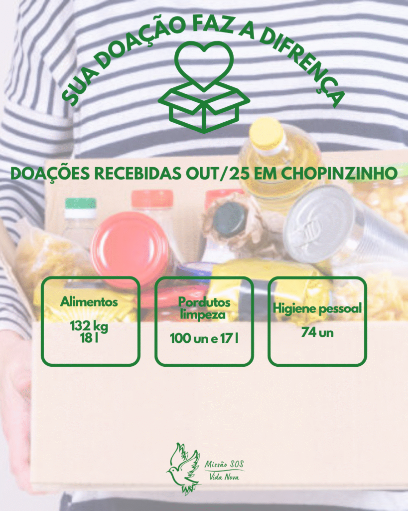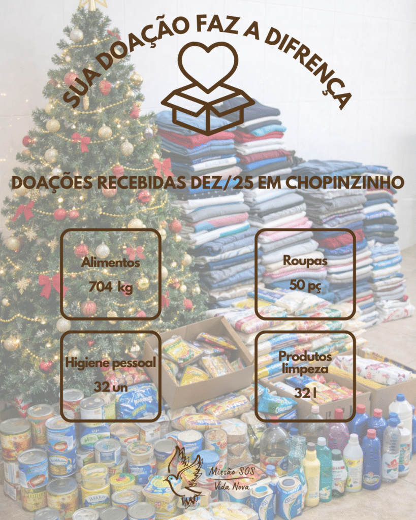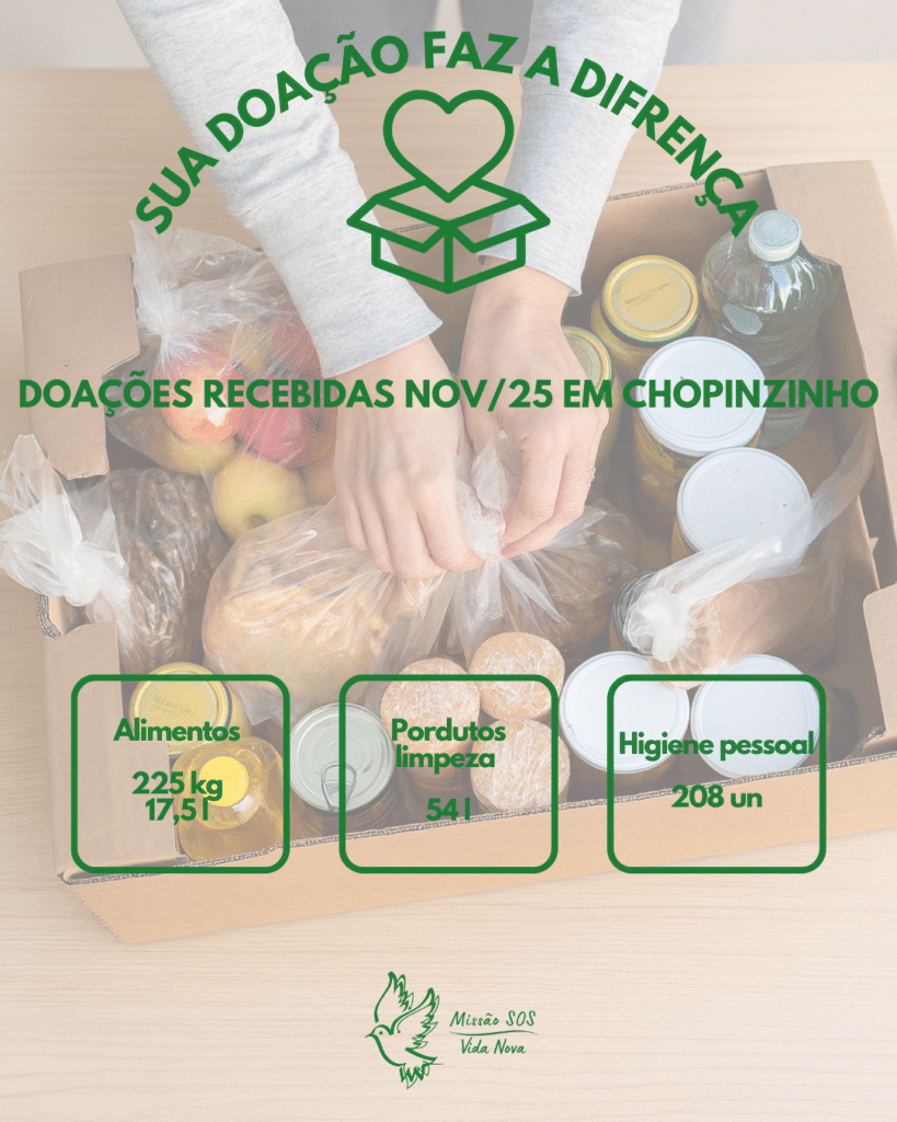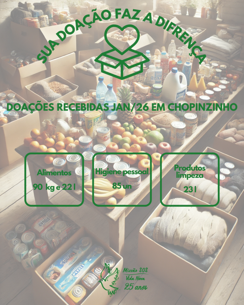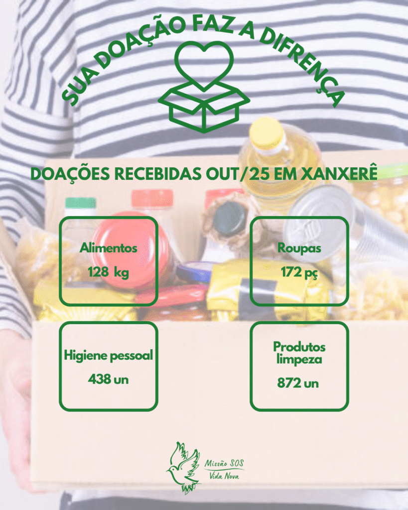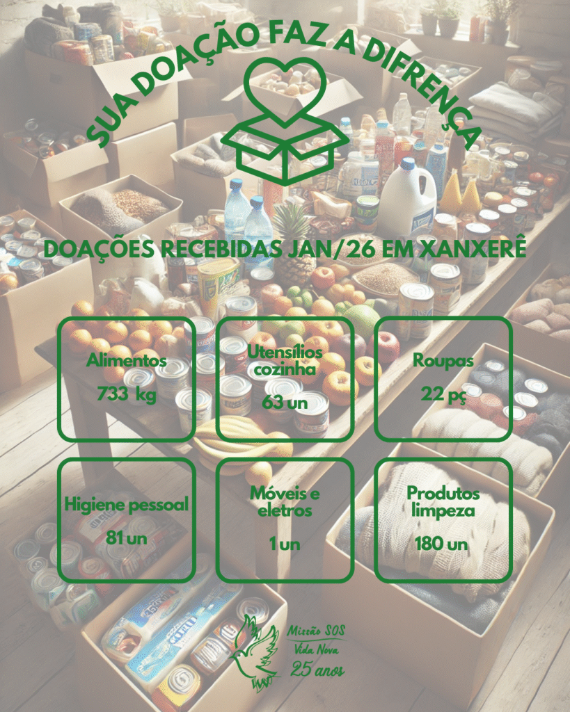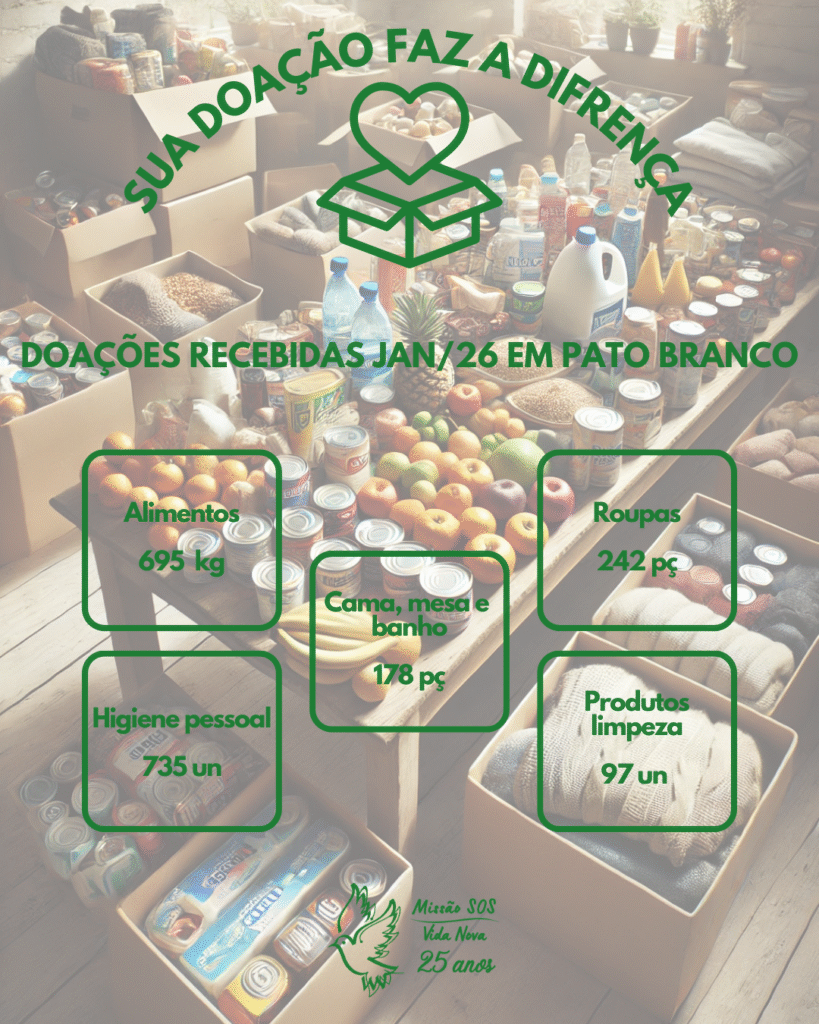 A Missão SOS Vida acolhe homens em situação de rua e em sofrimento por dependência de álcool e outras drogas. Todos os dias, mais de 80 pessoas recebem alimentação, cuidado, apoio terapêutico, formação espiritual e oportunidade de recomeçar. Para manter essa estrutura funcionando 24 horas por dia, precisamos de você. Cada doação é uma semente de esperança.